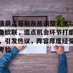 雷竞技娱乐网站-清晨孟菲斯灰熊调整名单以备欧联,造点机会环节打磨,引发热议,阵容厚度经受考验的简单介绍